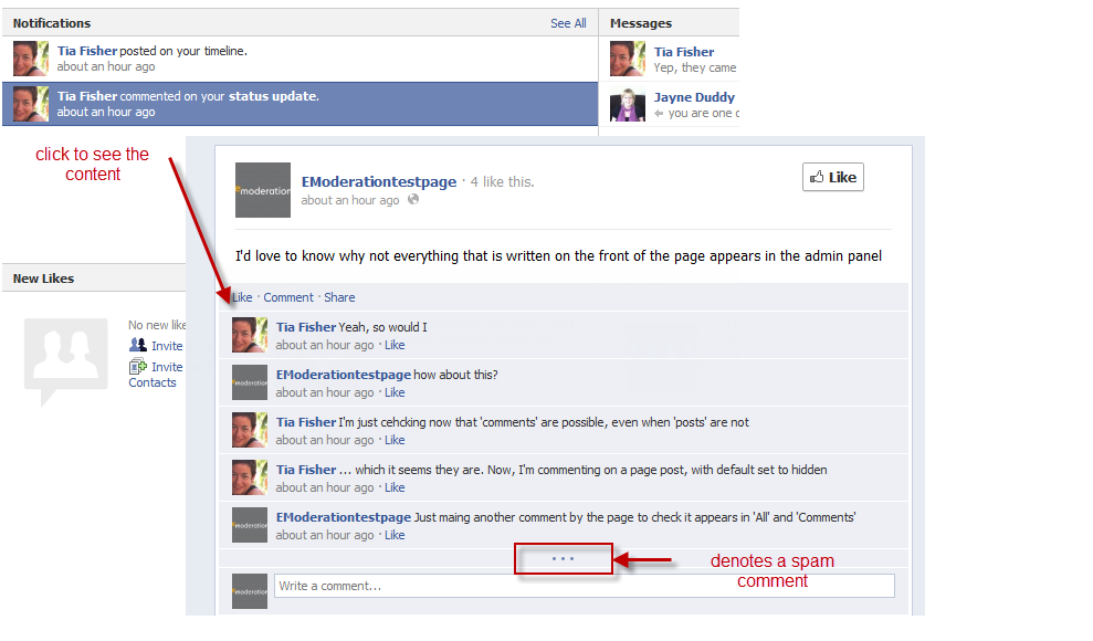 At eModeration we moderate a wide variety of client's Facebook pages and there have been some strange anomalies occurring since timeline started. As well as the Spam folder issue mentioned above, we use some third party Facebook management tools and these have shown some oddities. Some of the content has been appearing first in these tools before it is appearing in the timeline. While one tool saw the content appear first there, the other tool was not showing responses made by the Page admin in theirs ... It's been a fun time. No matter what tool you use, we always recommend that you look at the front-end of Facebook so you have the view that your fans and potential fans see.