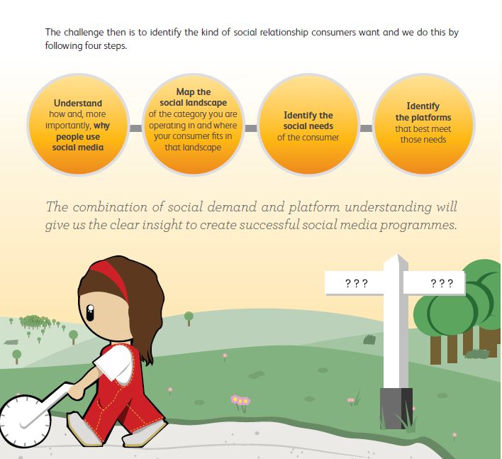 The report analyses the differing requirements for social media between product categories and across territories: for example, in Latin America brand communities are more likely to be driven by the desire to associate themselves with something (to support a cause or even something they think is cool). In Asia they are more likely to join if it was recommended to them by their peers and in the Middle East it is about feeling part of a like-minded community. Contrast what users want from a movie category (fun) with what they want from health (learning). And the level of interaction required varies by the kind of participation the user is having also: a user who is simply 'interested' in a category has different needs from one creating content and collaborating within it.