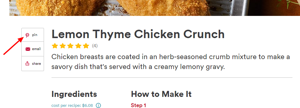 Companies like Pillsbury and DIY Network use these pins frequently throughout their website. They can usually be found on articles about recipes or crafts, which perform well on Pinterest.