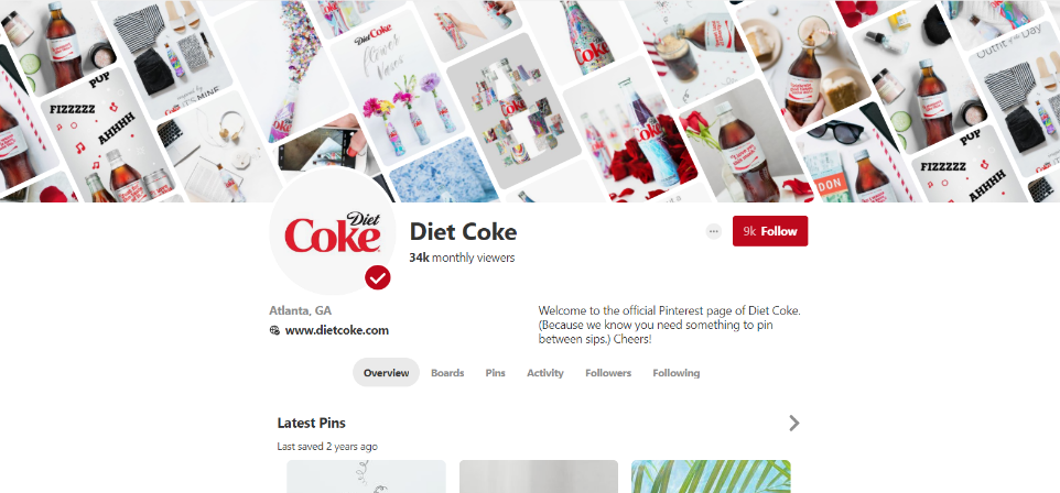 You can’t effectively market on Pinterest without creating a business account. These accounts provide webspace to highlight your company, including a brief summary, your latest pins, and a subscription button.