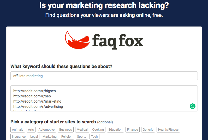 First, you need a list of online communities in which your target groups participate. Once you have the list, you can paste it into FAQFox’s search bar, along with your keyword/s of interest, in order to identify important questions.