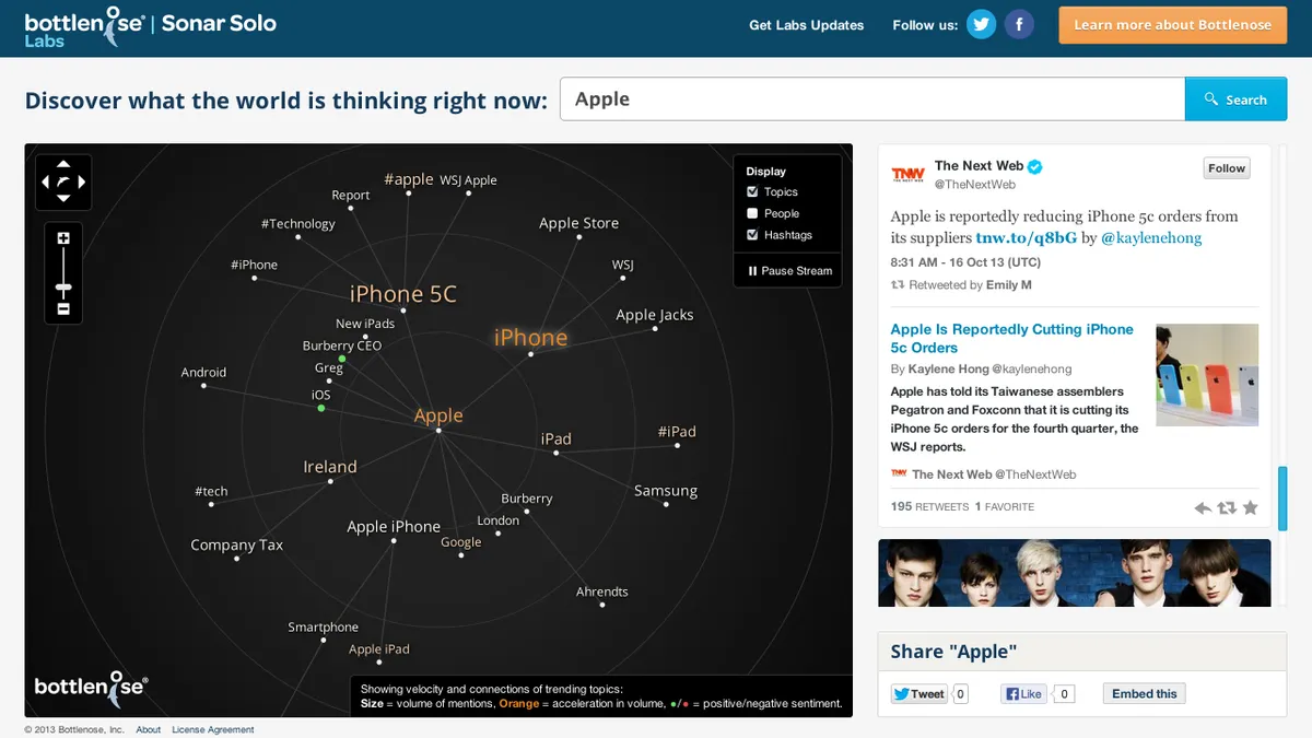 Using Bottlenose, you can search for the best keywords and topics to focus on, so you can amplify your visibility on social media channels. You can also get insight into the audience that's using certain trending keywords.