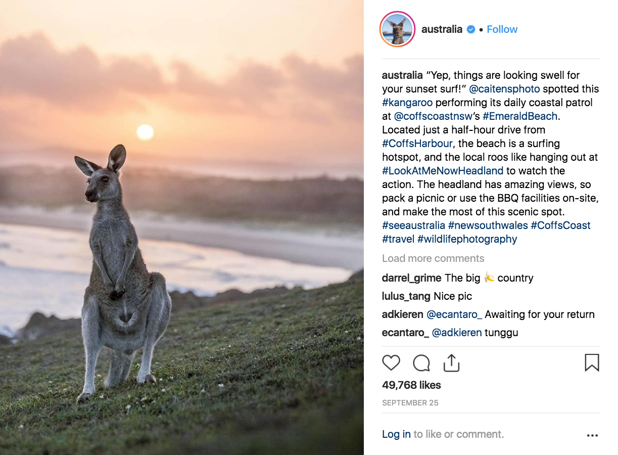 The rise in Instagram-influenced travel has caused those in the tourism sector to re-think their strategies. Tourism Australia's official Instagram account (@australia) currently has more than 3.2m followers thanks to its stunning mix of commissioned photography, UGC and witty captions.