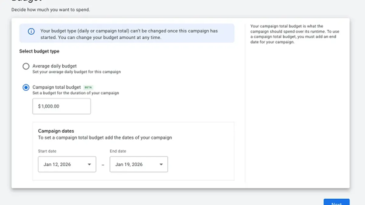 “Instead of making daily manual tweaks to keep pace, campaign total budgets optimize your spend, and aim to fully and effectively utilize your budget by your end date. Whether you’re running a 72-hour test or a month-long activation, you can launch with confidence knowing you won’t overspend or miss out on opportunities. Your campaign will stay on track for your budget goals without the need for daily maintenance.”
