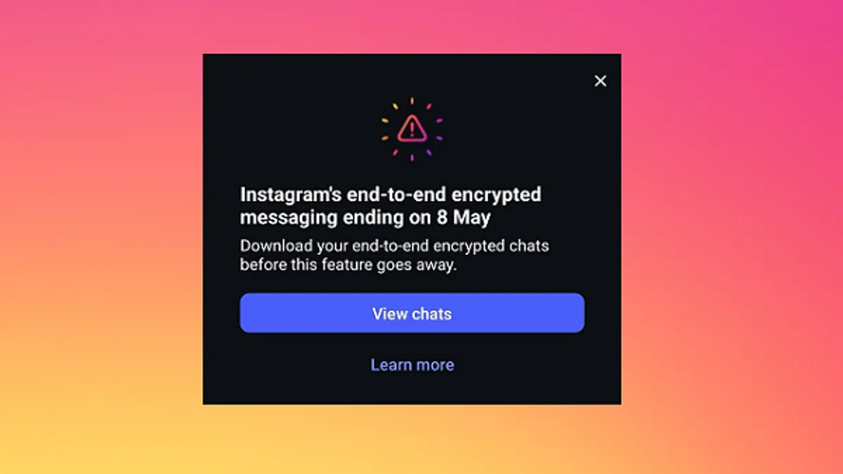 Instagram is ending its support for end-to-end encryption for Instagram DMs, with users being informed that the security measure will no longer be available on IG from May 8.