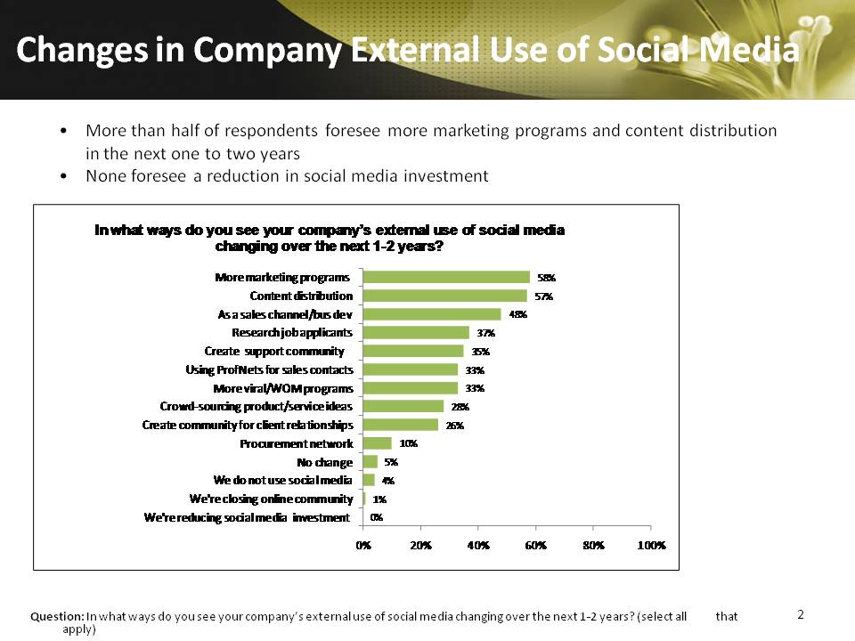 Professional networks for business are still evolving, and many corporate social media initiatives have not determined where they fall on the marketing and customer care spectrum. These findings suggest companies would be well-served by designing their social media programs to align more closely with the goals they are trying to achieve, such as educating the buyers, helping them find information they can't find elsewhere and building customer intimacy in support of client retention and engagement. Not to mention offering a little R-E-S-P-E-C-T.