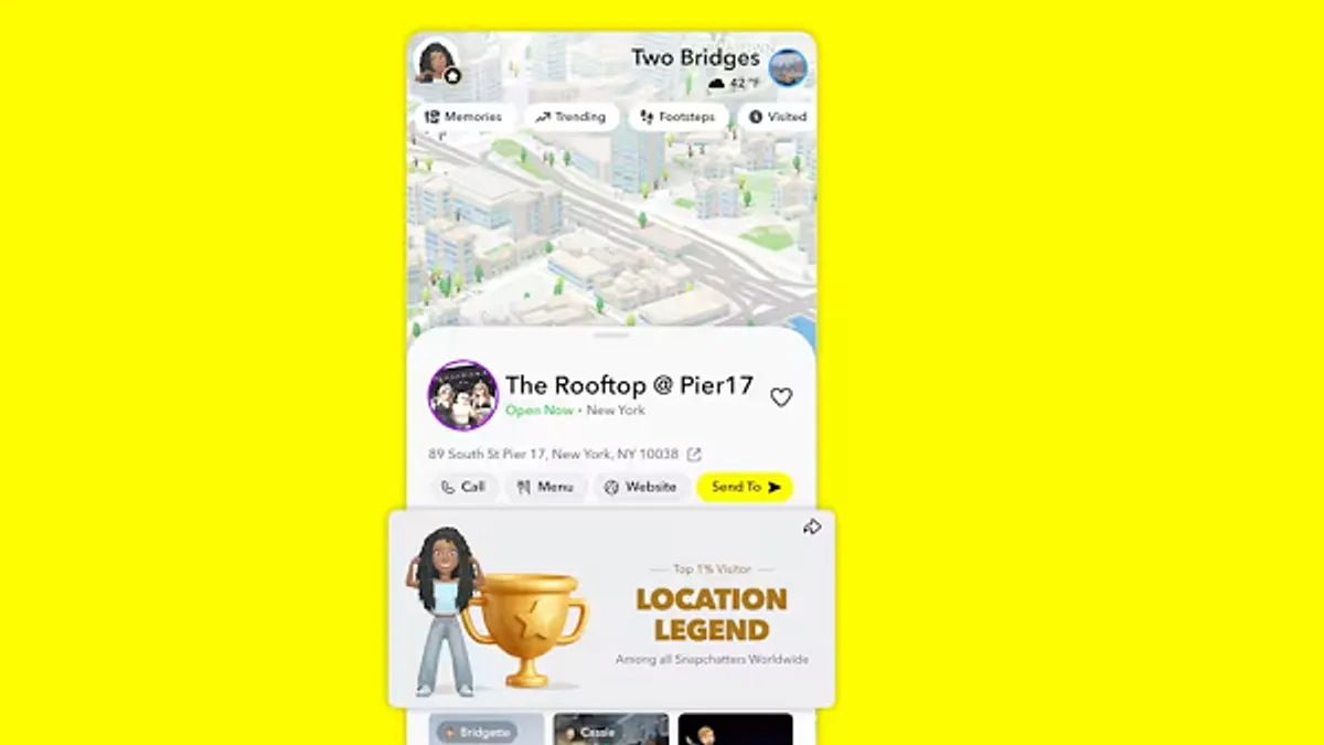 Snapchat added a new feature designed to encourage repeat visits to locations listed on the Snap Map with the app’s place loyalty badges, which celebrate the places each user visits most frequently.