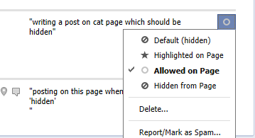 Note that spam and hidden posts are always visible to the user who posted them, and their activity will appear in their own timeline and be visible according to their own privacy settings. It is hidden only on the Page.