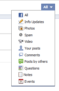 From here you can see who has most recently liked a post, posted on your timeline or replied to a status update. You can click through from here to see the actual content on the page, and you can delete or like comments and check out the hidden spam comments from here (also from the 'Activity Log', see later).