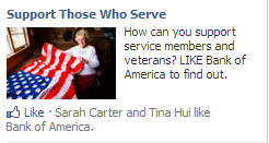 The Facebook ad that caught my attention asked, "How can you support service members and veterans?" The answer: "LIKE Bank of America to find out."
