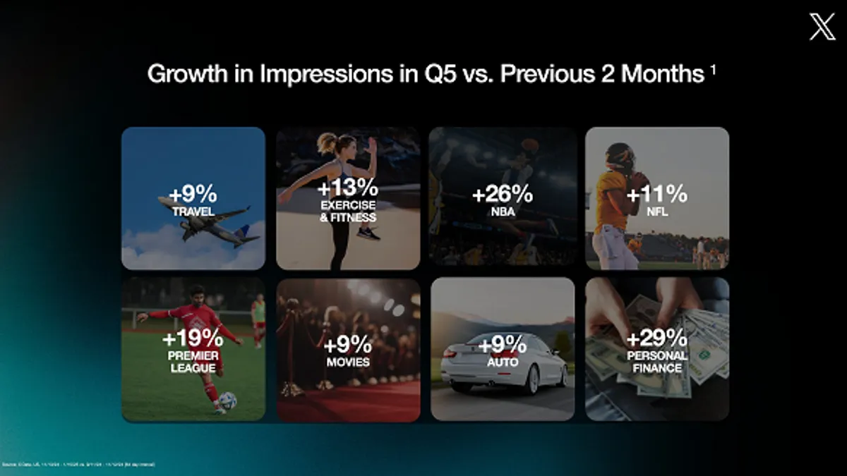 “Q5 – the ‘hidden quarter’ from late December to mid-January – isn't downtime. It's your low-competition launchpad for 2026 growth, where X users shift to post-holiday deal-hunting, resolution-setting, and conversation around travel, sports, fitness and more. Tap in to connect with motivated, affluent audiences primed for action.”