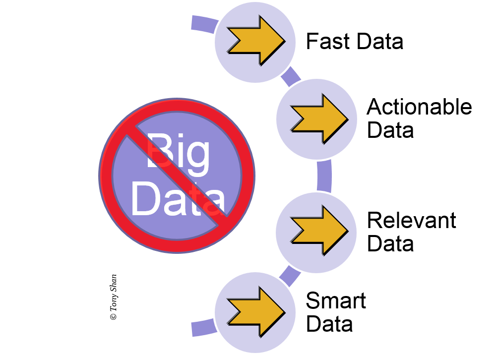 All in all, Fast Data, Actionable Data, Relevant Data, and Smart Data (FARS) are well poised today to replace Big Data for the new paradigm.